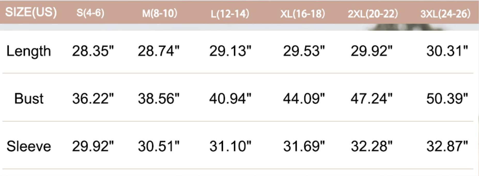 • Sizing Details